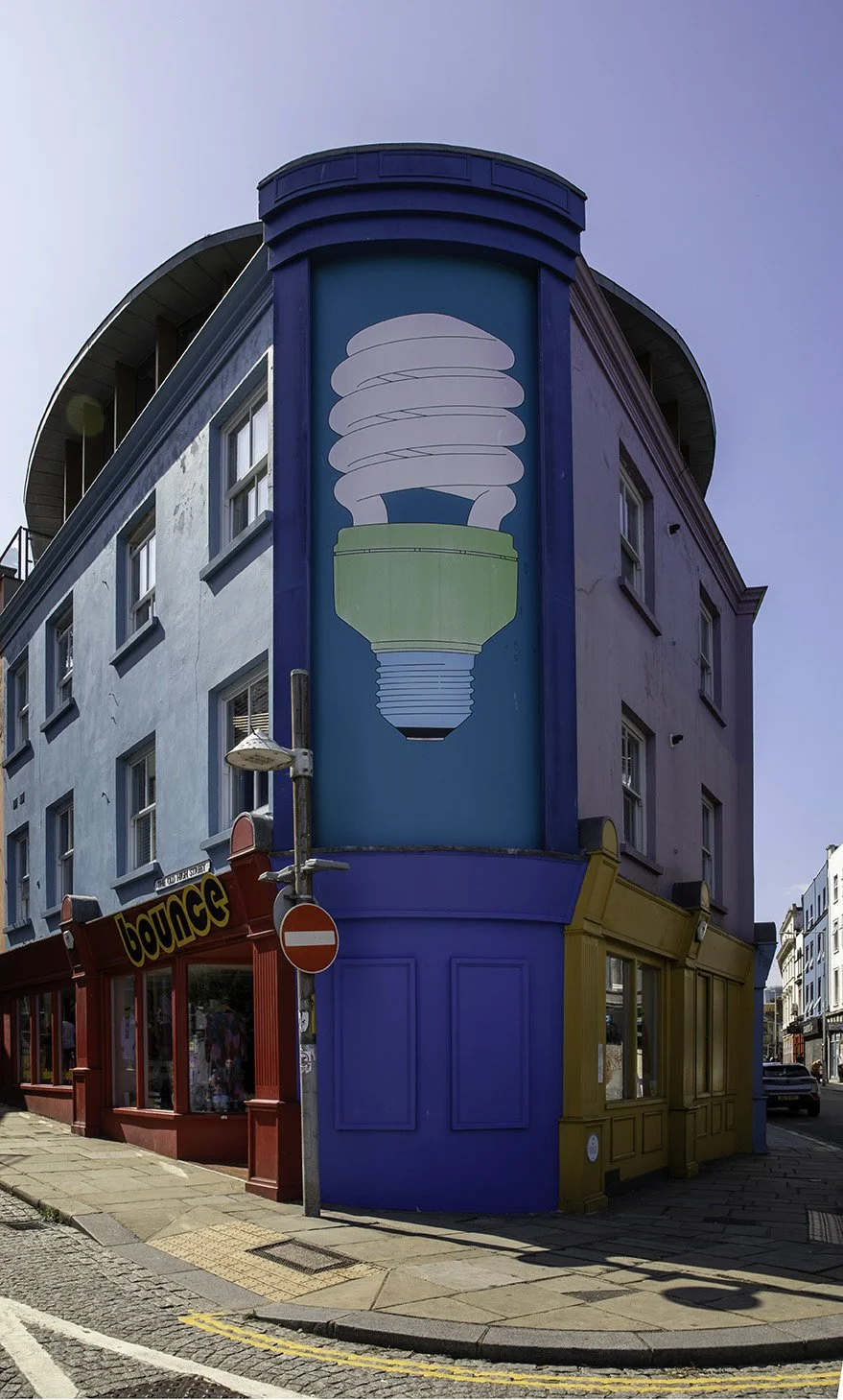 Then, moving back into the town, there is the building with a mural titled Folkestone Lightbulb by Michael Craig-Martin.