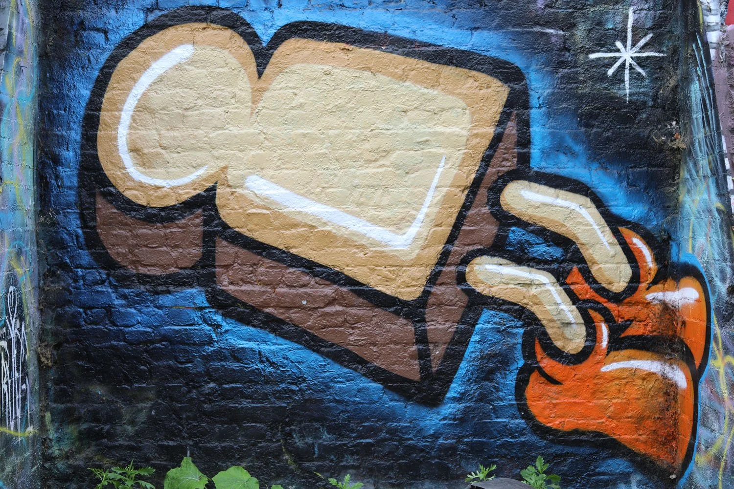 Just for fun, I’ll leave you for contrast with another slice of bread that caught my eye some time ago near Brick Lane. A piece of cute street art.